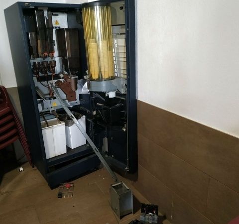 Según ha podido saber Rotaaldia.com, el o los individuos han roto la puerta de madera que da acceso a las diferentes salas de tanatorio, han reventado las tres máquinas expendedoras que suministran de café, agua y snacks a los familiares y amigos que se acercan en días puntuales a velar a sus seres queridos, y han arrancado la reja trasera del bar.