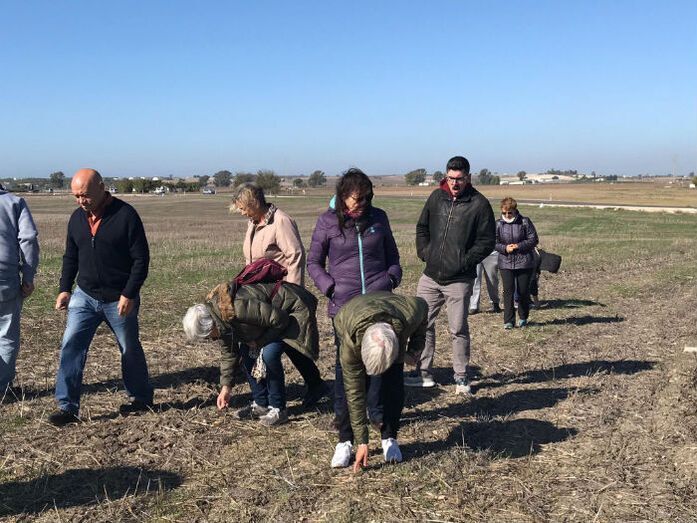 Enmarcado dentro de esa misma actividad, posteriormente se realizó una salida a los campos de Rota, para conocer de forma práctica los numerosos yacimientos arqueológicos del término municipal. En la salida al campo, los asistentes pudieron conocer las diferentes culturas que han pasado por Rota, el Arroyo Salado como eje vertebral de la campiña, y las principales vías de penetración de las mismas, y ver sobre el terreno los diferentes restos de las diferentes épocas: Paleolítico, Neolítico, Calcolítico, Bronce, Fenicios, Púnicos, Romanos e Islámicos. Algunos de estos yacimientos necesitan una excavación de urgencias, y otros no están incluidos o se encuentran mal ubicados en la actual Carta Arqueológica de Rota, por lo que la visitas sirvió además de reivindicación de estas cuestiones sobre las que "La base Natural y Cultural de Rota" está especialmente pendiente.