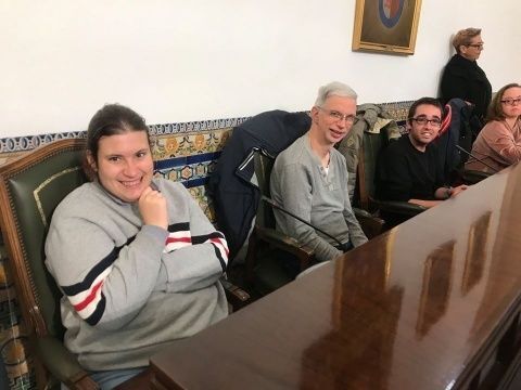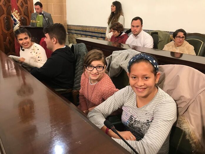 El salón capitular del Palacio Municipal Castillo de Luna ha estado ocupado en la mañana de hoy por los chicos con diversidad funcional del centro "Pili Varo" de Afanas y de la Asociación de Discapacitados de Rota. Son ellos los que han ocupado los asientos en los que normalmente se sientan los concejales de la Corporación municipal para, con motivo del Día Internacional de las Personas con Discapacidad que se celebraba ayer, 3 de diciembre, seguir reivindicando sus derechos y necesidades.