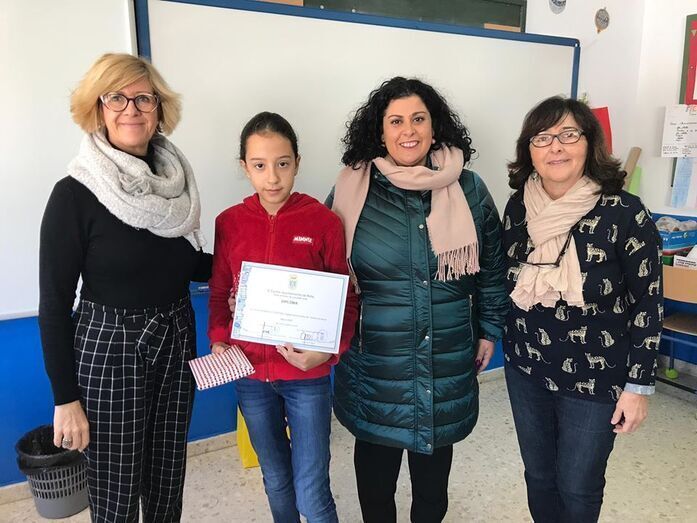 Además de entregar el regalo al ganador, las representantes municipales también han entregado un obsequio a los finalistas: Lucía Rodríguez Curtido, alumna de Azorín; Irene García Martínez y María del Carmen Pérez Sánchez, del colegio Luis Ponce de León; Israel Morilla Rodríguez y Julia Gasca Manday del colegio San José de Calasanz; Ángela Rodríguez Pizones, del colegio Salesianos; y Juan Manuel Merino Gómez, del colegio Pozo Nuevo.