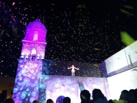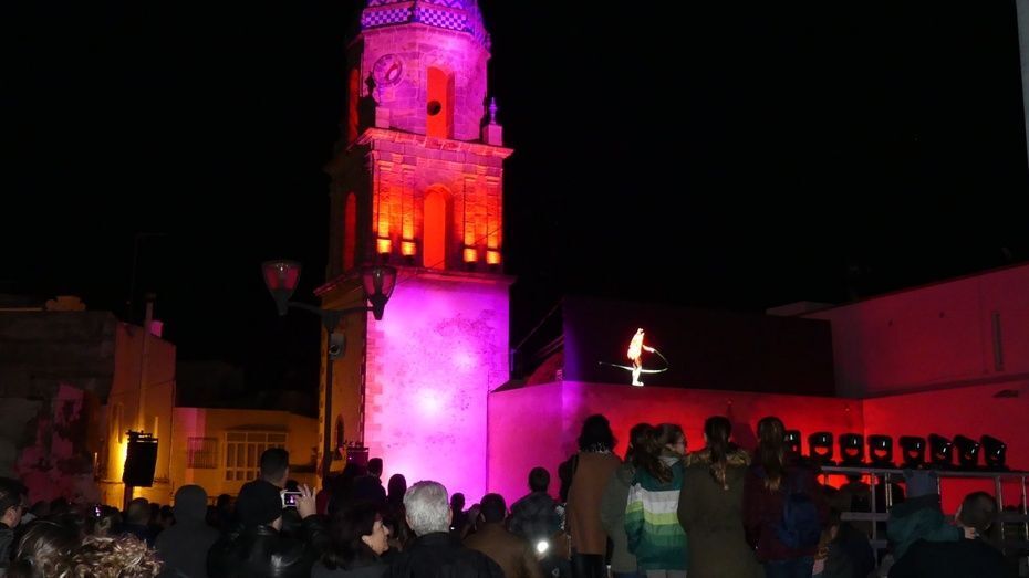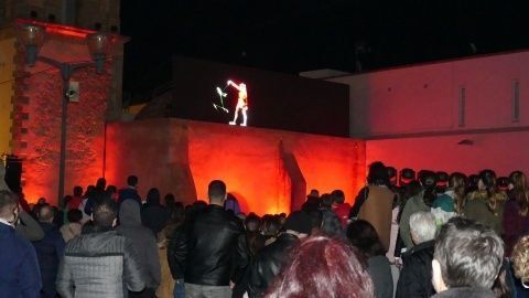 Una pequeña duende fue la protagonista del vídeo que pudieron seguir todos los asistentes en los que hubo momentos que la imagen traspasó a la realidad cuando se lanzaron balones, se prendieron llamas o hubo una explosión de papelillos que dio una imagen navideña a esta plaza céntrica.