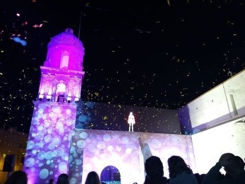 Muchos ciudadanos se congregaron en la plaza de la Merced para disfrutar del mapping