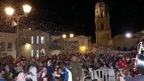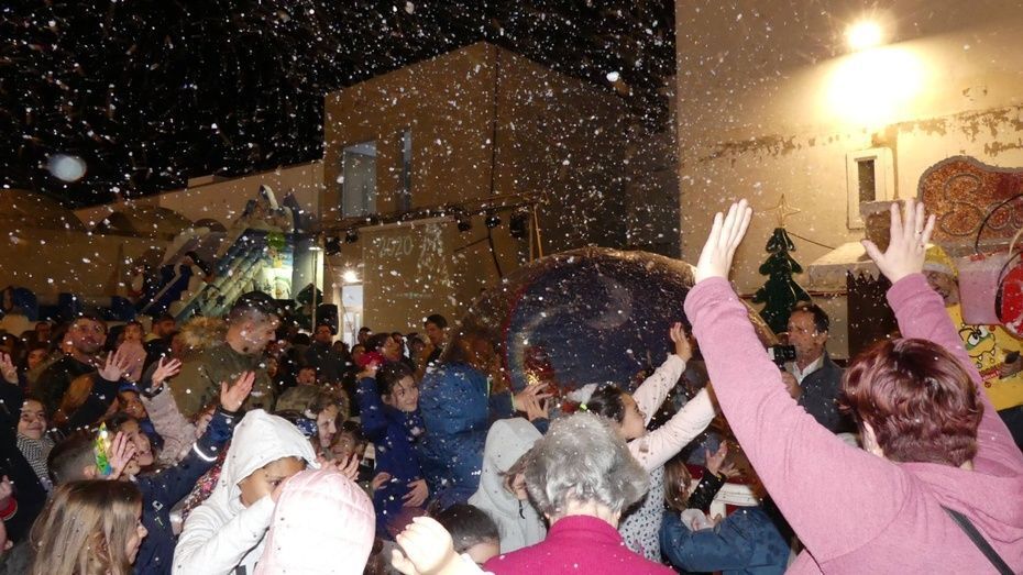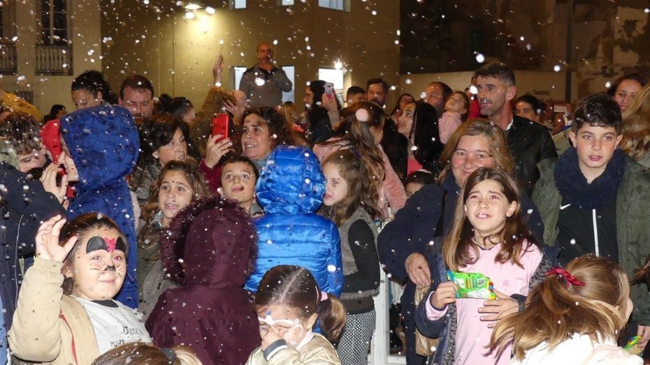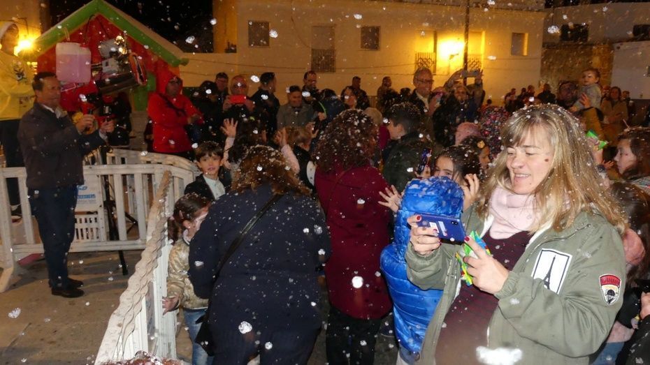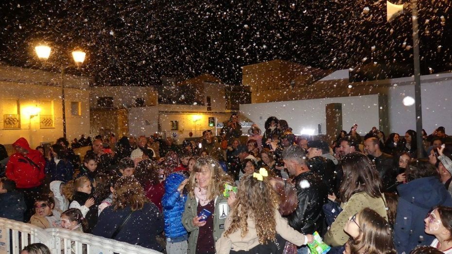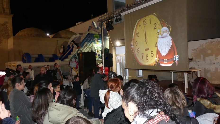El final y como se preveía, fue el reparto de gusanitos para simular las doce campanadas que los más pequeños disfrutaron desde una pantalla que se desplegó en el escenario donde un Papá Noel invitaba a entrar en el nuevo año con muchas ganas y alegría. El broche de oro y esperado por todos, fue la nevada artificial que llenó de copos blancos muchas cabezas y que dejó estampas navideñas que la gran mayoría quiso inmortalizar con el móvil en la mano.
