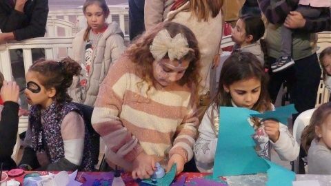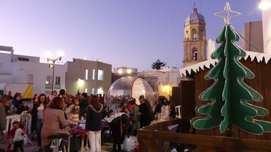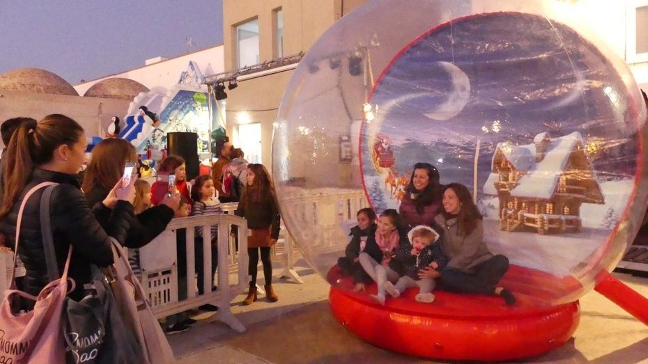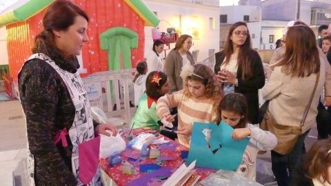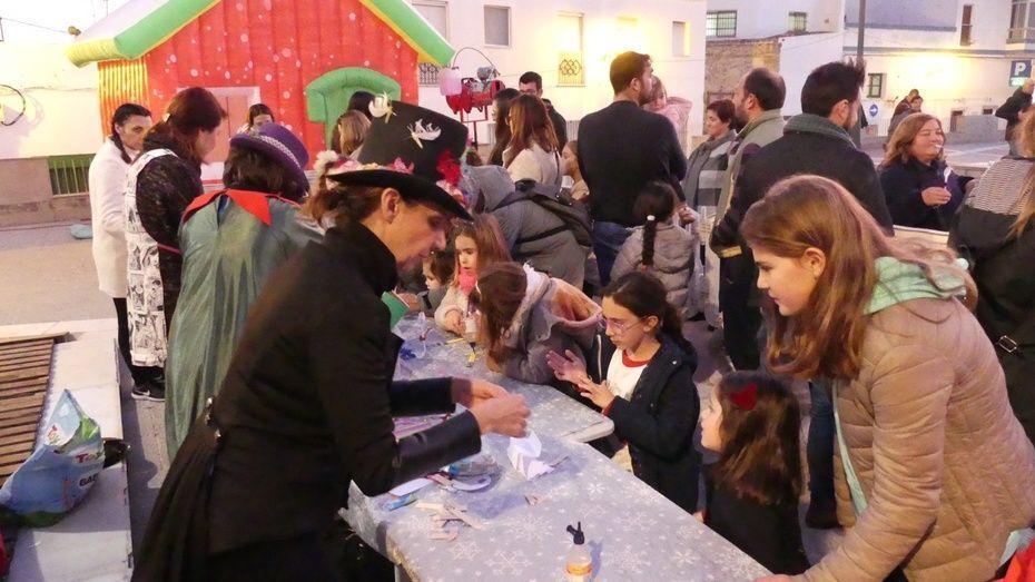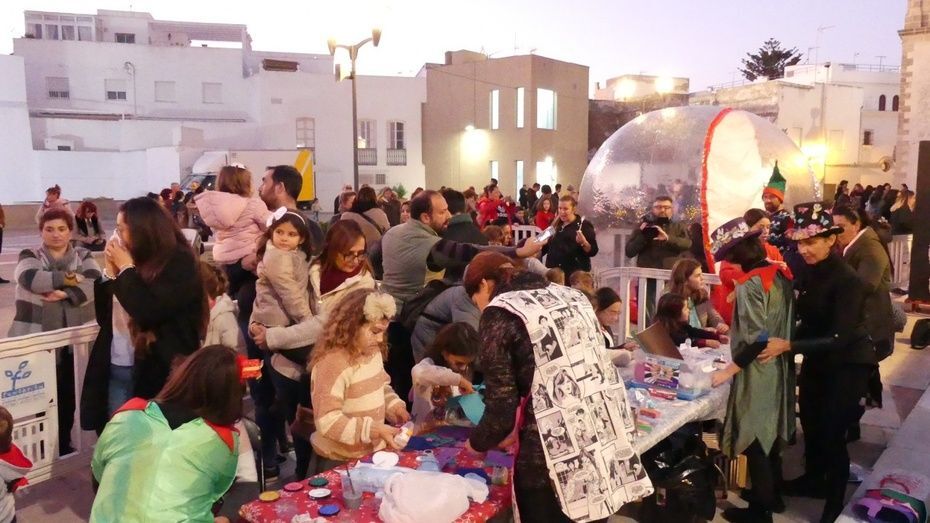 La plaza de la Merced acogió en la tarde de ayer la Fiesta Preuvas que el Ayuntamiento de Rota preparó para que los más pequeños de la casa pudieran divertirse realizando actividades pensadas especialmente para ellos. Esta era la segunda edición de una propuesta que este año contó con menos público que el año pasado aunque es cierto que aún así, en ella participaron muchos niños que pudieron disfrutar por un lado, de los talleres de manualidades y decoración navideña, pudieron entrar en una casa hinchable navideña para echarse fotos, meterse en la Gran Bola de Navidad, un 'photocall' que en estos días hace ruta por la localidad o subirse a los castillos hinchables para los que pese a que había que hacer cola, nunca falla a la hora de ser un atractivo para el público infantil.