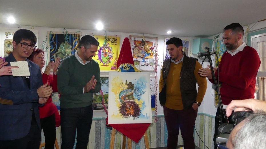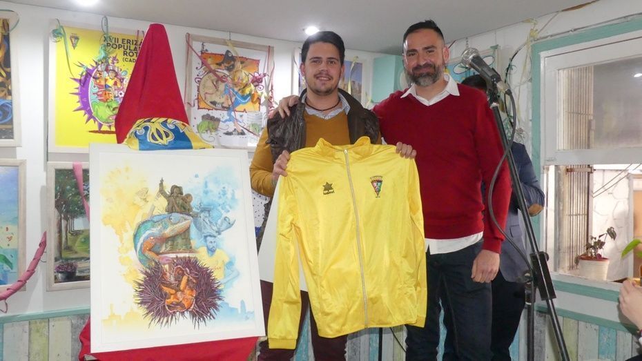 Miguel Cebrián reiteraba las gracias al joven autor por su obra destacando su calidad y las ganas puestas para que el resultado fuera del agrado de la peña. El presidente adelantó además que este año, la XIX Erizá Popular tendrá carácter solidario y durante la jornada de su celebración el día 16 de febrero, se venderán unas papeletas para la rifa de varias camisetas: una del capitán del Cádiz CF, José Mari, otra del cadista Juan Cala, una de la UD Roteña y otra del CD Rota. Todo lo que se recaude con la venta de papeletas se destinará a un fin solidario aprovechando así el tirón de gente que tiene la Erizá para una buena causa.