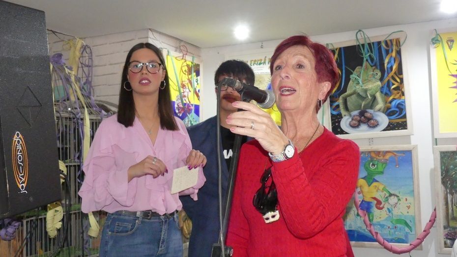 El tiempo de homenajes iba avanzando y la peña, con sus dos nuevos presentadores al frente, Juan Patino y Sara Rivero, que han tomado el relevo de sus padres en este acto tan importante para la entidad, subía al escenario a la pregonera del Carnaval 2020, Rosa Gatón. Agradecida por su nombramiento, espera que su pregón guste y sobre todo, que la fiesta se viva con intensidad y desde el corazón. La pregonera recordó a los anteriores delegados de Fiestas que en años anteriores le propusieron tener este destacado papel en el Carnaval pero por circunstancias tuvo que decir que no y será en este 2020 cuando por fin, vea el sueño cumplido de cualquier aficionado, pregonar el Carnaval de su tierra.