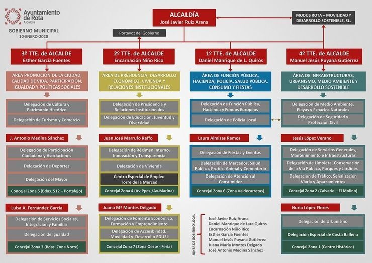[Img #128259]El alcalde de Rota, Javier Ruiz, ha llevado a cabo algunos cambios en el gobierno local modificando las competencias de algunos concejales con el fin, según han manifestado desde el gobierno local, de mejorar la optimización del trabajo y atención a los ciudadanos desde el Ayuntamiento de Rota.