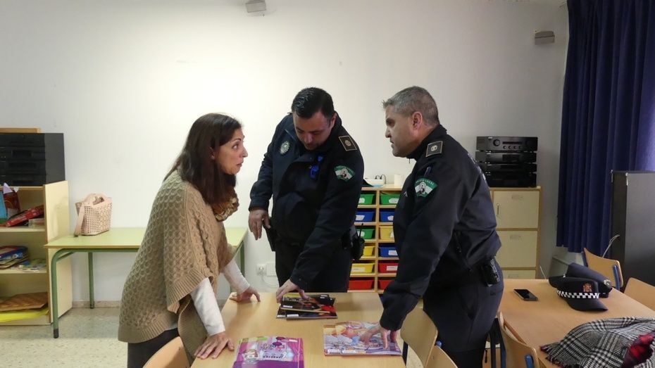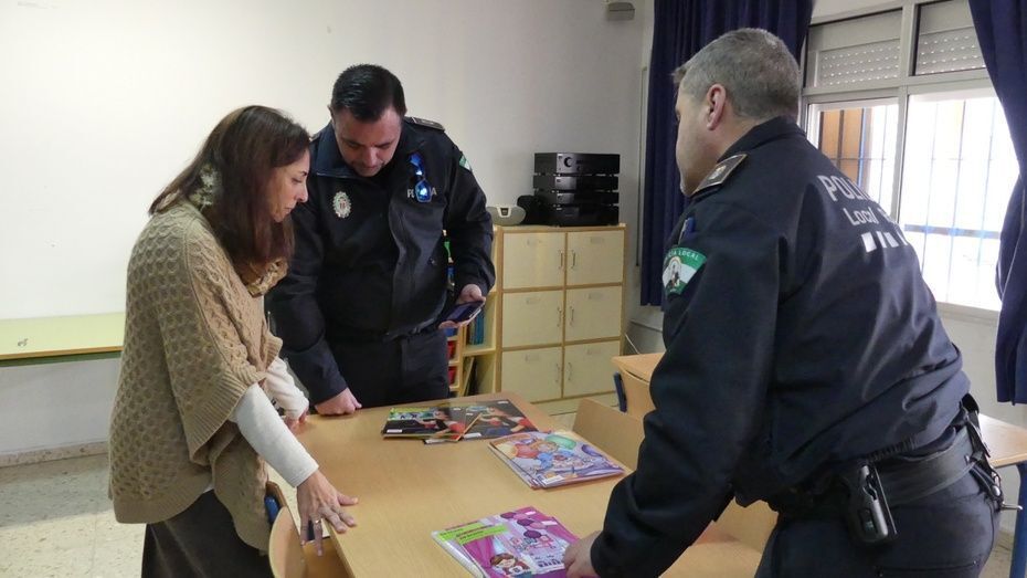 Esta mañana se ha hecho entrega de parte de este material en el colegio Azorín, contando con la presencia de representantes de Mapfre de la provincia y Rota, la nueva delegada de Educación, Encarnación Niño, técnicos de la delegación, agentes tutores de la Policía Local y la directora del centro.