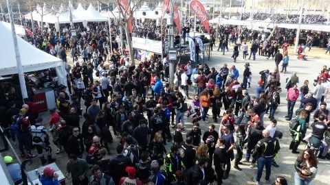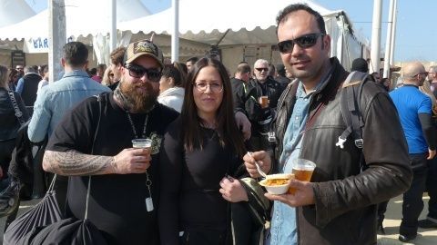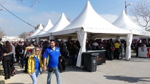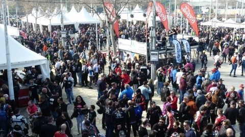 Durante toda la mañana, el trasiego de moteros ha sido una constante hasta tal punto que, pasadas las dos de la tarde, el recinto ferial, donde se concentra todo el ambiente, estaba a rebosar de gente y de motos de todos los tipos y tamaños, algunas, como es habitual, llaman mucho la atención por lo que para los aficionados es todo un lujo poder ver de cerca tanta variedad y en tan buen ambiente.