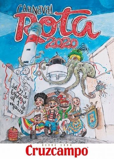 José Antonio Bellido ha recreado el faro antiguo de Rota como protagonista junto a un pulpo, propio de la gastronomía local, que viene a sustituir al camaleón, mucho más utilizado. Además, de un homenaje al grupo de "Intervenciones Rota" con sus calabazas que decoran calles del casco histórico, se recogen detalles como una bombona de butano con una especie de traje de flamenca, en honor a los disfraces "mamarrachos" y a aquellos que les gusta disfrutar en Carnaval saliendo a la calle con lo primero que pillan, y personajes que pasan por el arco de la villa de Cuba, América y otras procedencias como detalle de esa mezcla que se da en esta fiesta y que acoge a todo el mundo.