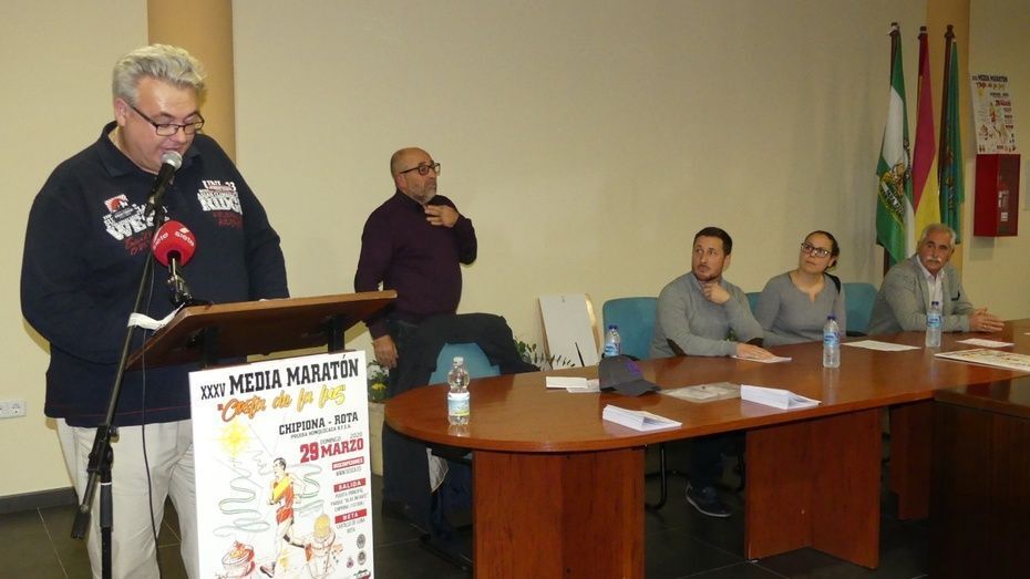 Este año, en el acto de presentación de la media maratón, que corría a cargo de un atleta muy querido en la provincia, el roteño Fabián Martín-Niño Sosa, también estaban los delegados de Deportes de los ayuntamientos de Rota y Chipiona, José Antonio Medina, y Laura González, además de miembros de la Peña Dosa de Rota y del Club Atletismo de Chipiona, con sus presidentes José Lobato y Juan Emilio Pérez respectivamente, que son los pilares de la organización. Acompañando esta presentación, miembros de diferentes peñas y entidades deportivas asiduas a la carrera que llenaron el salón.
