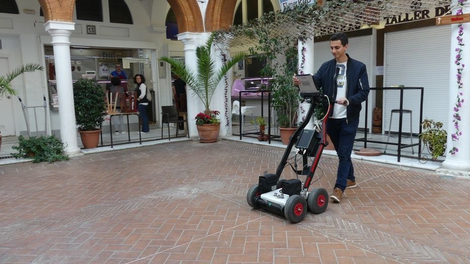 Durante la jornada de hoy jueves y quizás parte de mañana viernes, miembros de la Universidad de Cádiz, del Laboratorio Ivagro, Unidad de Geodetección, están trabajando en el Mercado Central de Abastos para detectar con sus equipos de georradar si bajo el suelo del patio de este edificio pudiera haber restos arqueológicos.