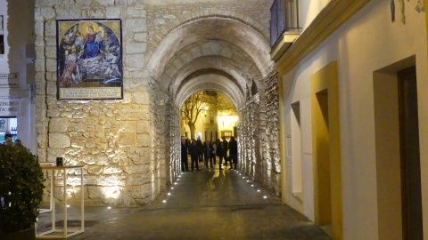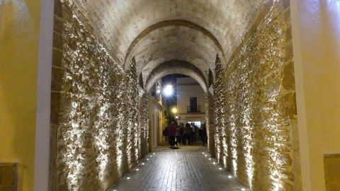 [Img #129636]Gracias a los trabajos realizados, con las diferentes catas que se han hecho en este tiempo,  los paños de muralla antigua de 1,5 metros de grosor que aún quedaban intactos se han recuperado, y el Arco de la Villa, iluminado con una luz tenue y cálida, se ha convertido en un espacio muy acogedor.