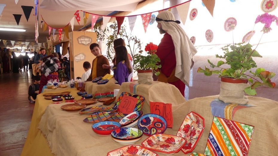 Ayer por la tarde, el pórtico del centro educativo se convirtió en un mercado andalusí que hizo partícipe a muchos alumnos, desde Infantil a Primaria, a todo el claustro de profesores y personal del cole, padres, madres y colaboradores externos para recrear una cantidad de puestos y tenderetes que fueron visitados por muchos ciudadanos que se acercaron para disfrutar del evento.