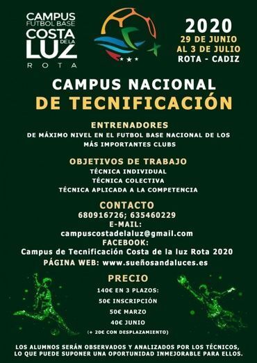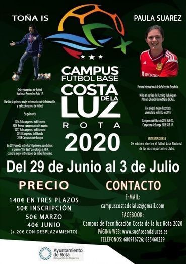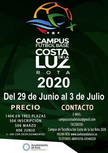 Rota volverá a ser escenario del Campus de Fútbol Base "Costa de la Luz" ofreciendo así la oportunidad a jóvenes futbolistas no solo de mejorar su técnica de la mano de entrenadores profesionales de primer nivel, sino conocer a otros jugadores de equipos de varias ciudades y además, compartir experiencias en torno a este deporte.