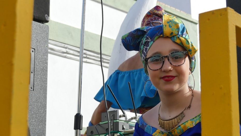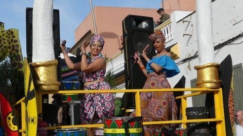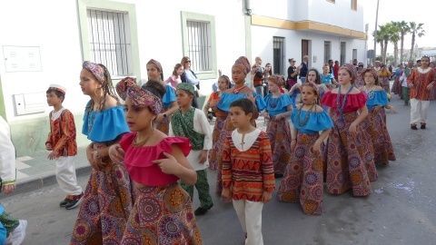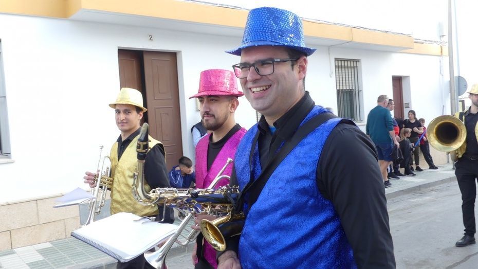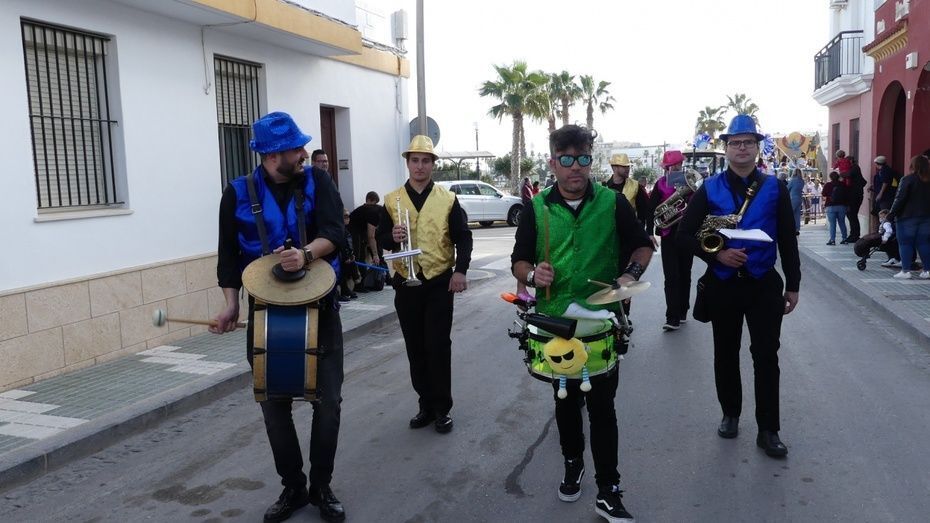 La música de las bateas en las que iban los alumnos más pequeños de los diferentes colegios, normalmente comercial y muy conocida, ha animado al público y a los propios participantes en la cabalgata que también ha contado con una charanga al inicio abriendo la comitiva y con la banda municipal "Maestro Enrique Galán" que la cerraba. En ese último tramo iban también las damas del Rosario en una batea y los 25 niños, ninfas y atlantes de este año, además de la Sirena Paula Díaz y el Neptuno Alexis Cerpa.