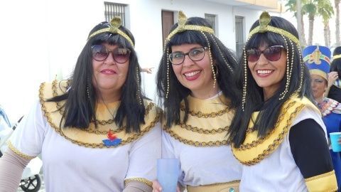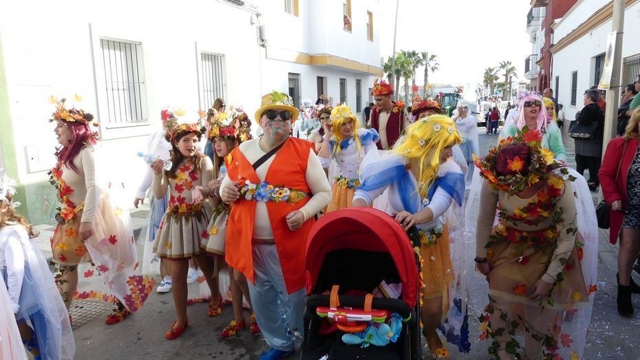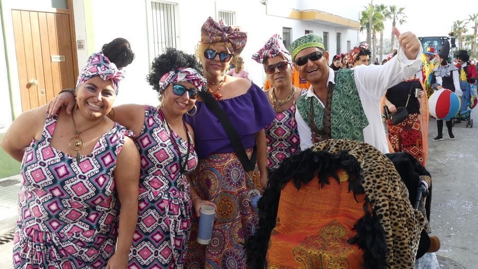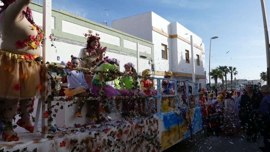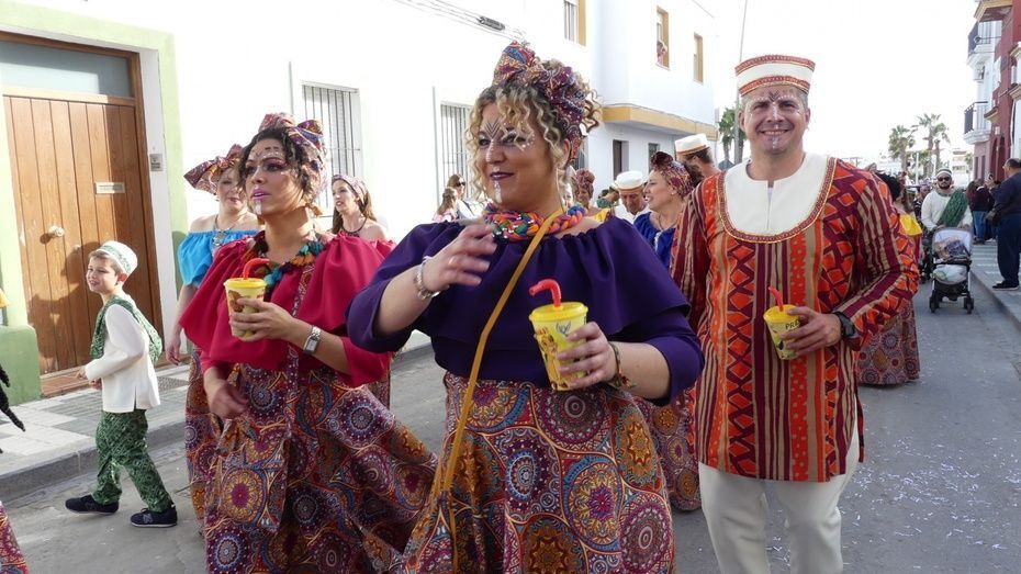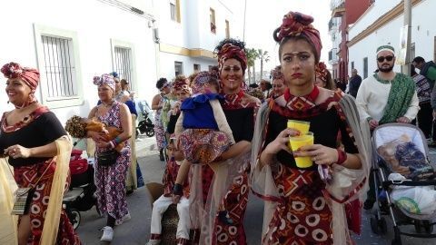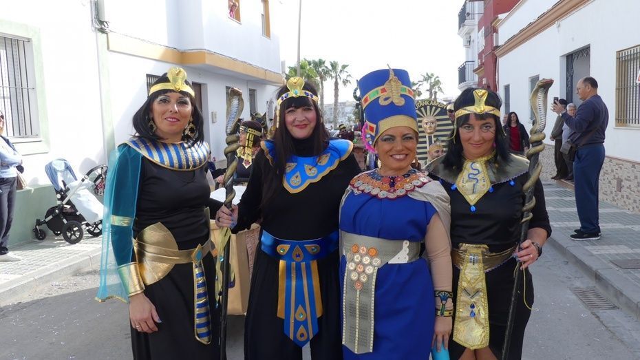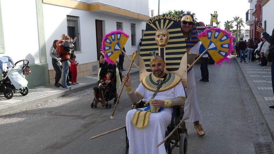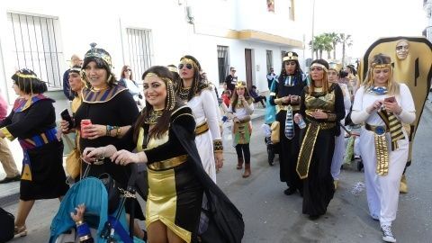 Los egipcios y faraones del colegio Pedro Antonio de Alarcón, Los Diminutos de la Asociación de Personas con Discapacidad de Rota, las estaciones del año del San José de Calasanz, los Super Mario de "La Escuelita", los africanos del Luis Ponce de León, los variados accesorios de baño del Maestro Eduardo Lobillo, el batallón algo psicodélico de Azorín, además de cubanos, aviadores, trogloditas, peter pan y campanilla, vendedores ambulantes, payasos y otros tantos ciudadanos que iban por libre, en solitario, en pareja o en grupo, se han podido ver en esta Gran Cabalgata del Humor a la que a medida que iba avanzando se iban incorporando representantes de agrupaciones locales. A decir verdad, en algunos tramos el desfile ha estado más animado que en otros donde los parones o el espacio demasiado largo entre batea y batea, hacía perder el ritmo. Aún así, y algo es cierto, Rota ha despedido su Carnaval por todo lo alto teniendo en cuenta que ayer sábado fue un día grande y el viernes con el festivo con motivo del Día de Andalucía también se pudo vivir mucha fiesta.