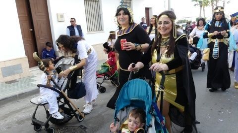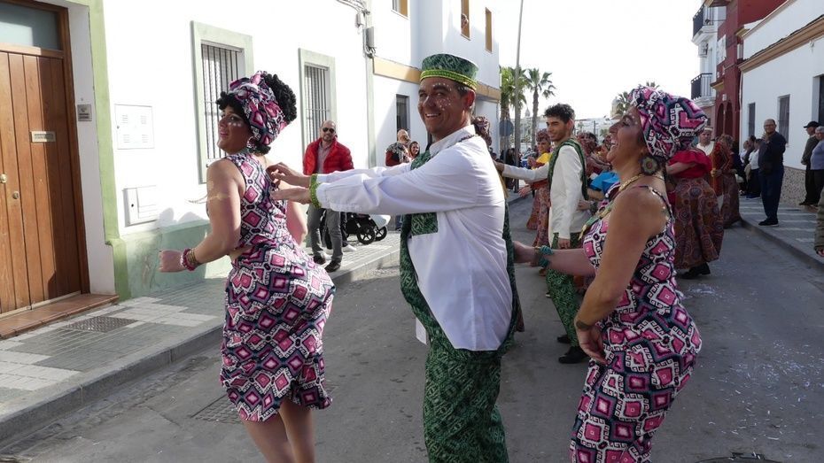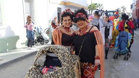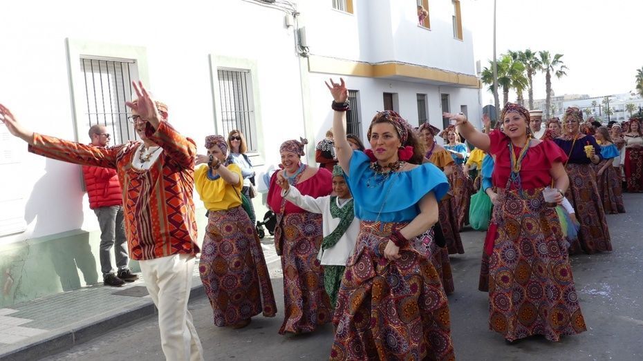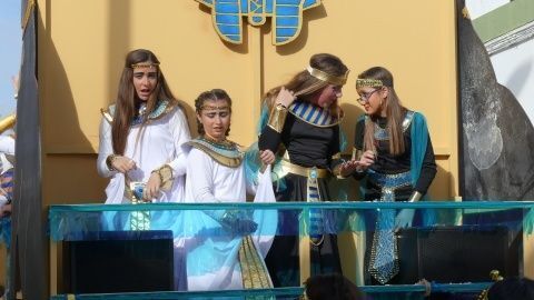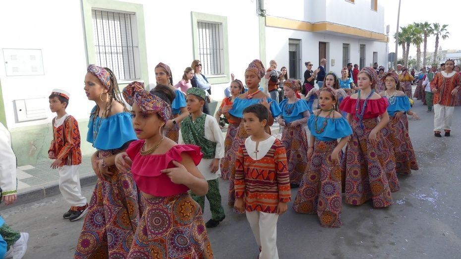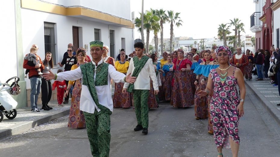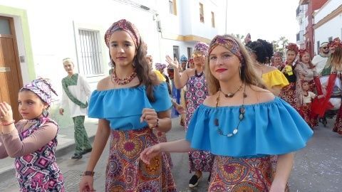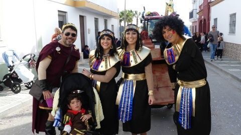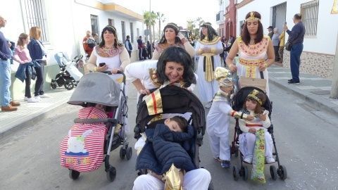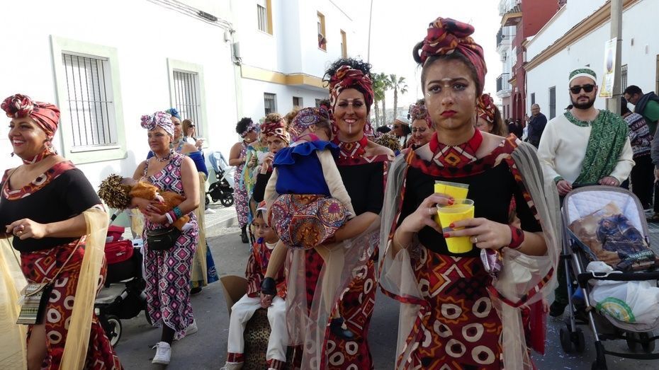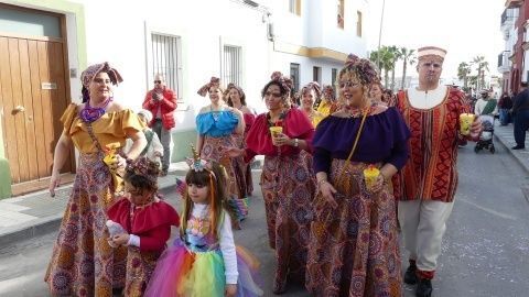 Los egipcios y faraones del colegio Pedro Antonio de Alarcón, Los Diminutos de la Asociación de Personas con Discapacidad de Rota, las estaciones del año del San José de Calasanz, los Super Mario de "La Escuelita", los africanos del Luis Ponce de León, los variados accesorios de baño del Maestro Eduardo Lobillo, el batallón algo psicodélico de Azorín, además de cubanos, aviadores, trogloditas, peter pan y campanilla, vendedores ambulantes, payasos y otros tantos ciudadanos que iban por libre, en solitario, en pareja o en grupo, se han podido ver en esta Gran Cabalgata del Humor a la que a medida que iba avanzando se iban incorporando representantes de agrupaciones locales. A decir verdad, en algunos tramos el desfile ha estado más animado que en otros donde los parones o el espacio demasiado largo entre batea y batea, hacía perder el ritmo. Aún así, y algo es cierto, Rota ha despedido su Carnaval por todo lo alto teniendo en cuenta que ayer sábado fue un día grande y el viernes con el festivo con motivo del Día de Andalucía también se pudo vivir mucha fiesta.