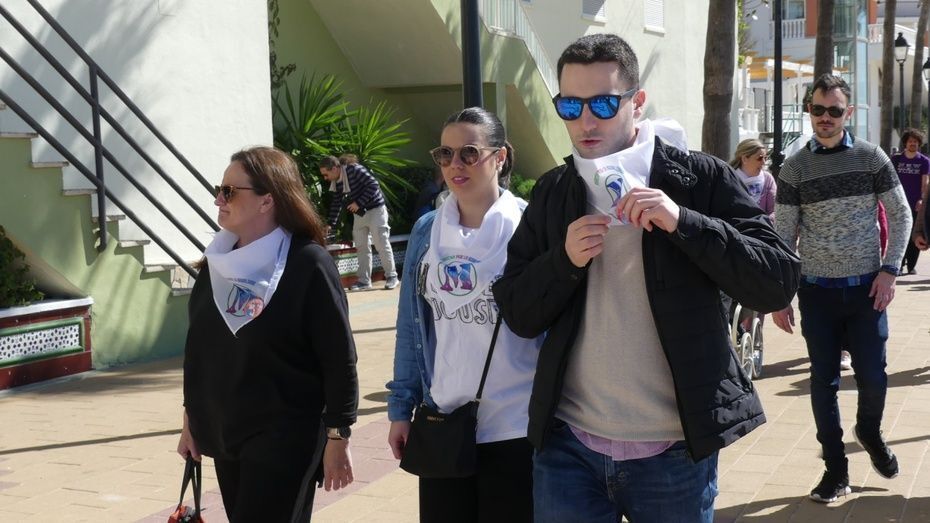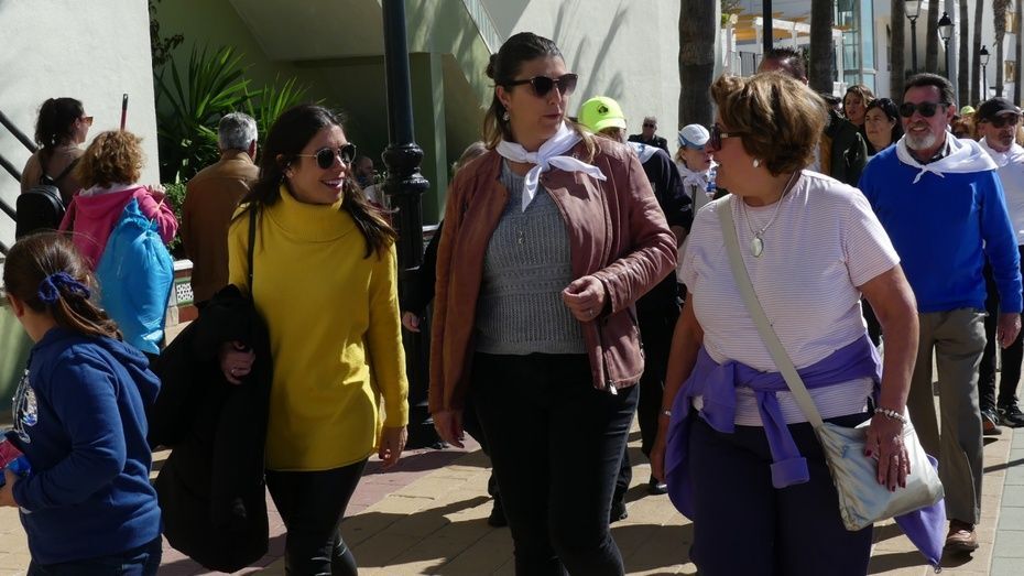 La marcha se ha desarrollado sin hacer ruido, sin gritar ninguna consigna y sin pancarta, a excepción de pañuelos en el cuello que la organización ha ido entregando según se han inscrito los participantes; unas inscripciones, de 3 euros por persona, que se van a destinar a ayudar a víctimas de violencia de género marcando así el carácter solidario de una actividad en la que se ha podido ver aparte de ciudadanos en general y representantes de alguna asociación, a algunas mujeres concejales del gobierno local, entre las que estaba la delegada de Igualdad, Luisa Fernández, al delegado de Participación Ciudadana, José Antonio Medina, y miembros de la Corporación como los ediles de PP, IU o Ciudadanos.