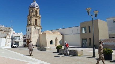 Durante esta jornada de domingo, efectivos de Infantería de Marina de San Fernando están realizando de nuevo labores de desinfección en  Rota, como ya lo han venido haciendo en otras ocasiones. De esta forma, colaboran en la lucha contra el coronavirus, reforzando las tareas de desinfección que se vienen llevando a cabo por parte del Ayuntamiento o del colectivo de agricultores voluntarios.