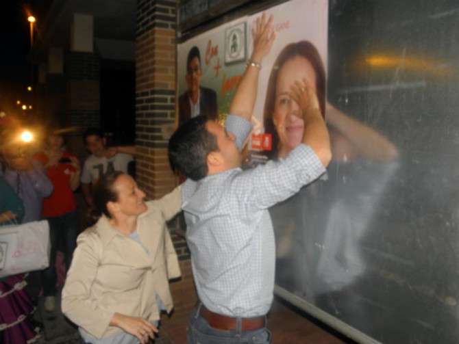 Anoche, oficialmente arrancó la carrera para coger la Alcaldía del Ayuntamiento de Rota y los siete partidos que concurren a estas elecciones municipales, (RRUU, PSOE, PP, IU, UPyD, PA y AIRE), decidieron hacer un acto simbólico conjunto de pegada de carteles electorales pidiendo el voto. Dado que los roteños disfrutan desde el pasado miércoles de su Feria de Primavera, el acto que en ocasiones anteriores se ha llevado a cabo en plazas céntricas como plaza España o María Auxiliadora, tuvo anoche un tinte muy feriante. Y es que teniendo en cuenta que prácticamente todos los candidatos y demás personas que componen las candidaturas políticas se encontraban en el Real, el Ayuntamiento habilitó un par de paneles informativos junto al recinto ferial, para facilitar el acto simbómico de inicio de campaña.