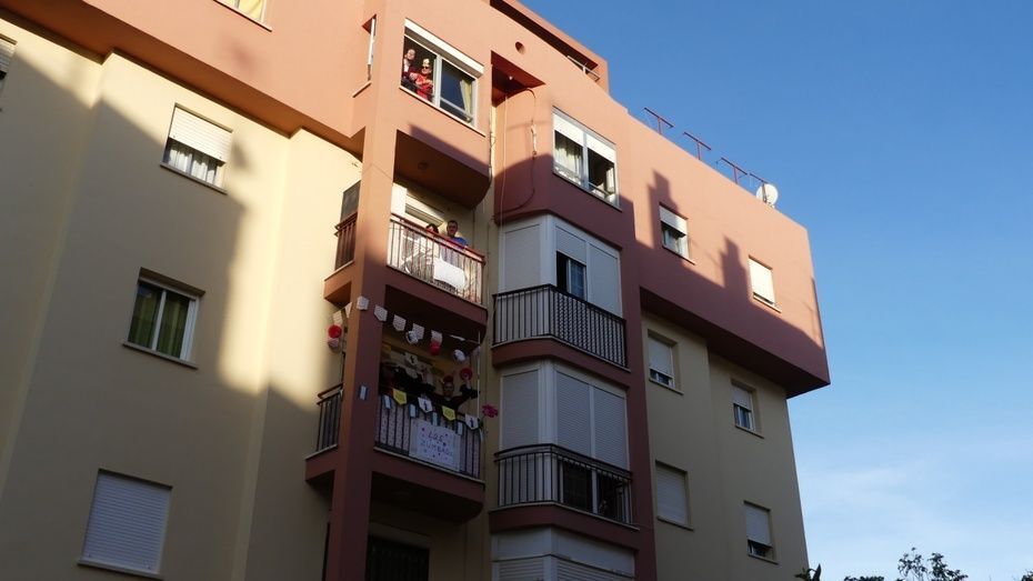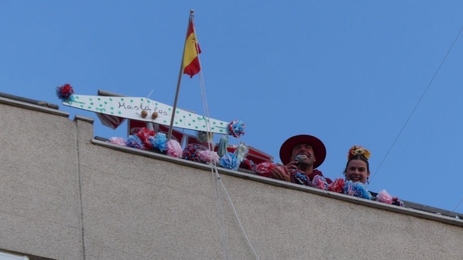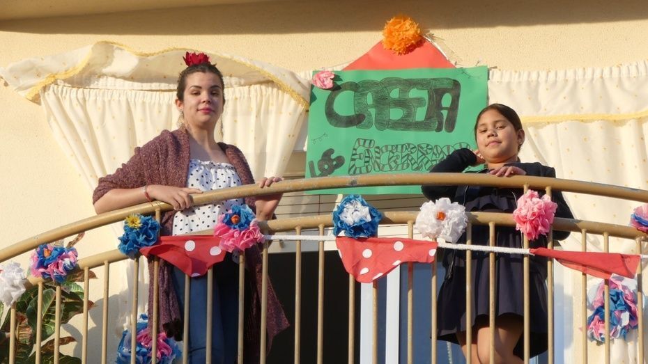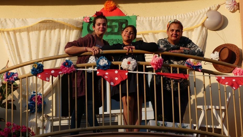 Con la crisis sanitaria provocada por el coronavirus el recinto ferial de Rota que un día como hoy, sábado 2 de mayo, debería estar lleno de gente y preparado para vivir una jornada grande de ambiente, está vacío. No hay casetas, no se escuchan sevillanas, ni hay mujeres vestidas de flamencas. Pero los roteños no se han resignado y tirando de ingenio y haciendo comunidad, han montado su propia fiesta desde los balcones.