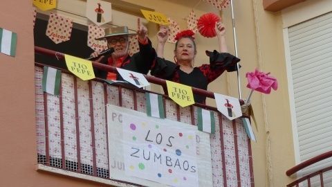 La imaginación ha hecho buena parte del trabajo y las ganas de los vecinos de compartir momentos en esta situación tan peculiar, ha puesto el resto. Anoche, Rotaaldia.com no se dio una vuelta por el Real, lo hizo por varias calles de la localidad en la que por balcones y ventanas asomaban flores de gitana, copas de Manzanilla y vasos de rebujito.
