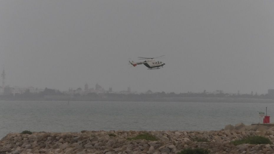 Los roteños han podido ver a lo largo de la tarde sobrevolar muy bajo el helicóptero de la Guardia Civil y movimiento policial por la zona del espigón cercano al muelle de Rota y la playa del Chorrillo.