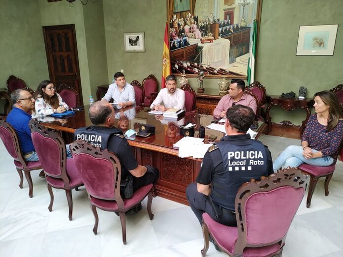 Con el fin de ir avanzando en la preparación de las playas roteñas de modo que estas estén listas para el baño con todas las garantías una vez que se permita a los usuarios acudir a disfrutar de la costa con cierta normalidad, en el día de ayer, el alcalde de Rota, Javier Ruiz, mantuvo una reunión con el teniente de alcalde delegado de Policía Local, Daniel Manrique de Lara, el delegado de Playas y Protección Civil, Manuel Jesús Puyana Gutiérrez, representantes de Policía Local y Protección Civil y la técnico de playas.