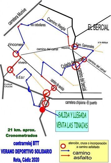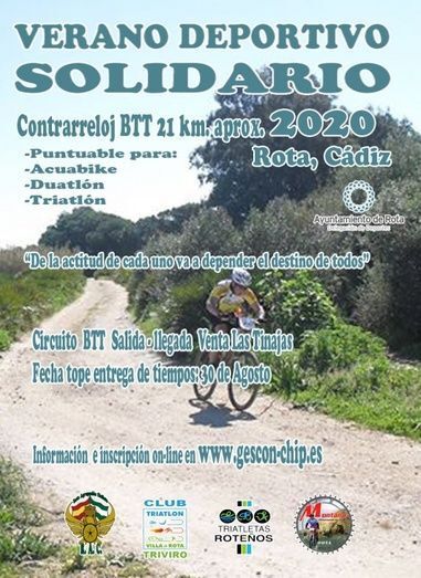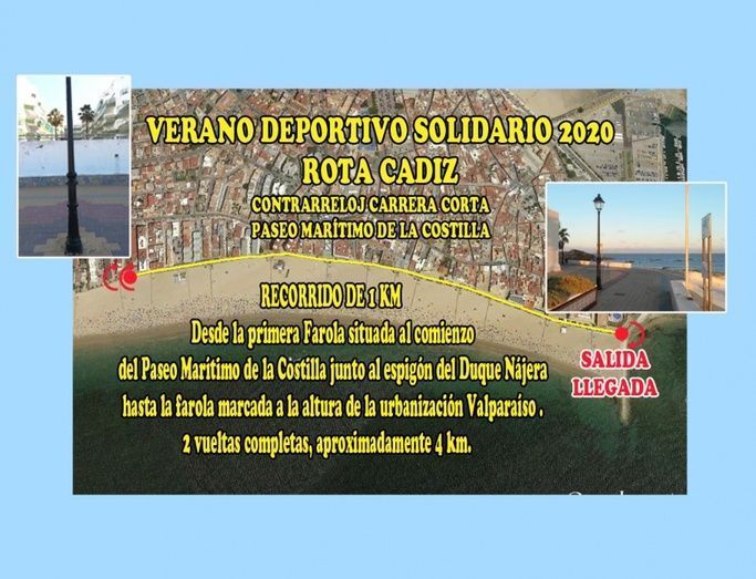 El Ayuntamiento de Rota señalizará el recorrido de las distintas pruebas que serán una carrera contrarreloj de atletismo con distancia de 8 kilómetros, y una de 4 kilómetros; un circuito de natación que discurrirá por la playa de la Costilla hasta Virgen del Mar, de unos 800 metros; y un último circuito de bicicleta de montaña (BTT) de 20 kilómetros, que discurrirá por el mismo recorrido que lo hace la Maratón BTT "Villa de Rota" que este año como otras tantas actividades, quedó suspendida.