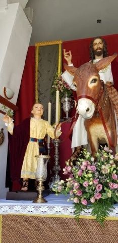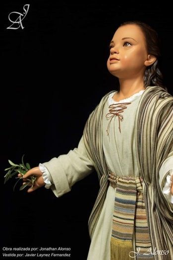 La imagen de la niña hebrea con rasgos de síndrome de down que el pasado Domingo de Ramos no pudo procesionar como novedad junto a Nuestro Padre Jesús de la Paz, en la conocida popularmente como la procesión de La Borriquita, está expuesta en la capilla de San Roque para que todos los ciudadanos que lo deseen puedan visitarla.