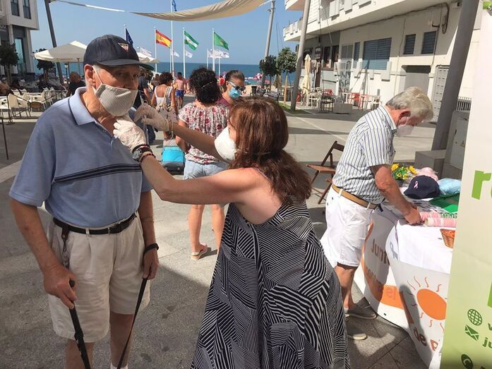 A lo largo de esta mañana de este sábado, la asociación "Rota Lucha contra el Cáncer", Rolucan, está situada en la plaza Jesús Nazareno, en plena Costilla, una de las bajadas a la playa con más trasiego de público, para informar a los ciudadanos sobre los peligros de tomar el sol sin protección.