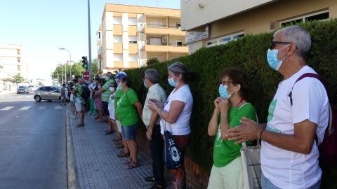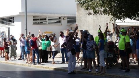 Poco a poco, los asistentes a esta concentración autorizada, todos con mascarillas, han ido sumándose hasta llegar a unas 200 personas en ambos lardos de la avenida María Auxiliadora, a la altura del centro de salud desde donde se han podido oír consignas del tipo "No nos mires. únete", "Sanidad, pública", "No a los recortes", "Defiende tu centro de salud" y algunas más en la misma línea entre aplausos.