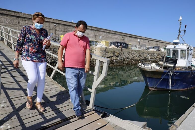 Con el fin de recoger las necesidades del sector pesquero, la delegada municipal de Fomento y Empredimiento, Juani Montes, se ha reunido con el presidente de la Cooperativa de Pescadores de Rota, Juan José González Seba, y esta mañana, tras ese encuentro de trabajo, han realizado una vista a las instalaciones del puerto deportivo en la que la concejal ha podido ver de primera mano los aspectos que reclaman los pescadores en materia de infraestructura, como el mecanizado del pantalán de carga y descarga de la lonja.