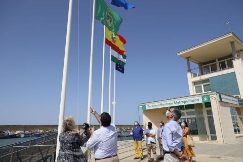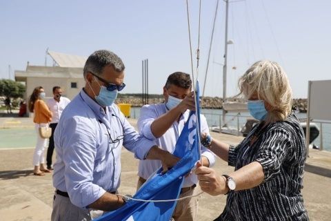 Desde este mediodía, la Bandera Azul otorgada por la ADEAC al puerto deportivo de Rota ya ondea en su mástil certificando así la calidad de las instalaciones. Esta mañana, el primer teniente de alcalde, Daniel Manrique de Lara, junto a la delegada territorial de Fomento de la Junta de Andalucía, Mercedes Colombo, y el jefe de zona del puerto de Rota, Juan Santamaría, han procedido al acto oficial de izado que se celebra cada año poniendo de relieve la garantía que ofrece esta certificación con la que también cuentan todas las playas de la localidad, además de los senderos de pasarelas de madera, el Centro de Interpretación del Litoral y el jardín "Celestino Mutis".
