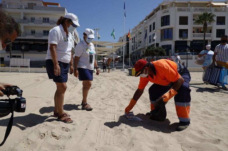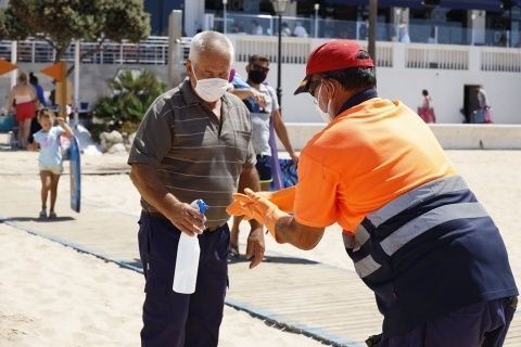 Concretamente, se llevó a cabo un simulacro de carácter ambiental, en base a una llamada por la presencia de mascarillas y guantes tirados en la arena, en el que el personal de Playas activó los protocolos pertinentes.