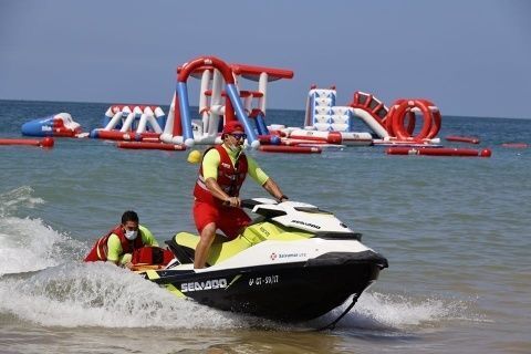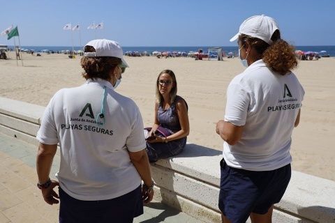Hubo un simulacro de seguridad en el que se abordó una situación simulada de incumplimiento de la normativa Covid-19 por parte de un usuario, a través del aviso de uno de los vigilantes de la playa, con la intervención de la Policía Local, por no llevar la obligatoria mascarilla. Y un tercer simulacro de seguridad, que se centró en un incidente simulado ocurrido en la plataforma acuática de la playa de la Costilla, con rotura ósea, y la atención a los protocolos remitidos por el 112 incluyendo su traslado.