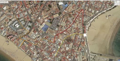 Y concluye su intervención de la siguiente manera: "Decidimos que la tubería fuera hacia la vertiente natural, por calle Castelar. Cuando derivamos el saneamiento hacia San Roque, María Auxiliadora, hacia la estación de bombeo de la avenida de la Diputación, le quitamos vertidos a la parte de la estación de bombeo del Chorrillo, supone menos riesgo y menos consumo energético. No hay tubería de tanta profundidad en la calle Isaac Peral. La hemos resuelto por Castelar para que sea más directo. Esa solución implica que se alterne la tubería, en amarillo en la foto, que discurría por Isaac Peral, se va a eliminar. También el tramo de Higuereta y el aliviadero existente en la Plaza de Jesús Nazareno en una segunda fase. Con estas obras, conseguimos que el fluido vaya mucho más directo por Castelar, San Roque y María Auxiliadora. Y ya en Isaac Peral se mete una tubería para desaguar las viviendas de esa zona porque pueden ir mucho más arriba".