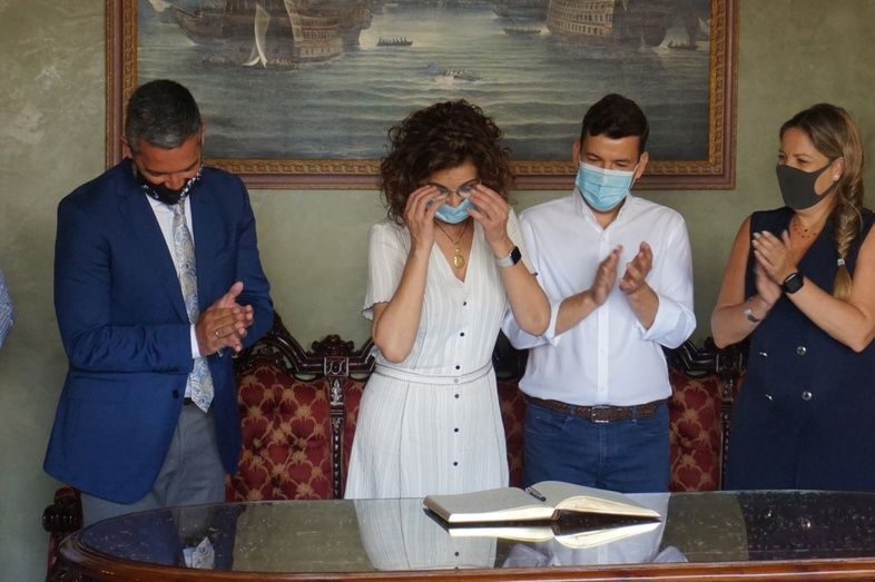 En primer lugar, la ministra portavoz ha conocido personalmente a toda la Corporación municipal en el Castillo de Luna, y en las escaleras del recinto ha tenido lugar un minuto de silencio por una nueva víctima de violencia de género, antes de que la ministra se reuniera con el primer edil para saber más sobre los problemas de Rota. Minutos después, Montero ha querido dejar constancia, con su firma en el Libro de Honor, de su presencia en la localidad, y se ha dirigido públicamente a los medios de comunicación para lanzar la noticia que Rota lleva esperando tanto tiempo.