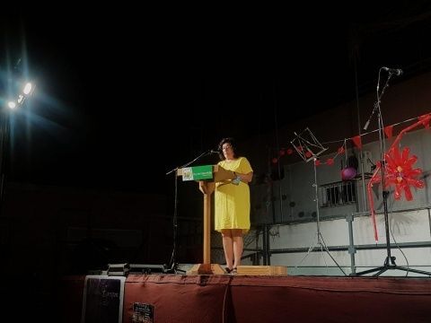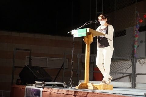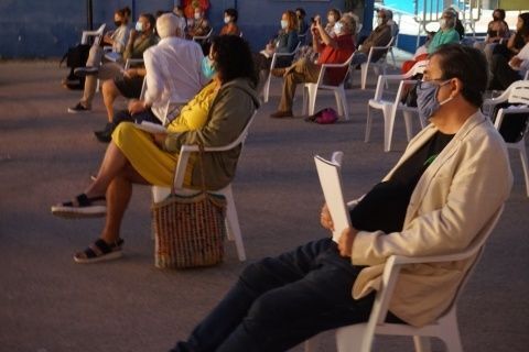 Sólo quedaba tiempo para "la fiesta de la poesía", como decía el portavoz de IU, Pedro Pablo Santamaría. Una celebración que no sólo supone el privilegio de poder escuchar a algunas de las voces literarias más reconocidas del panorama nacional, sino también una oportunidad para reinvidicar luchas políticas que desde IU consideran fundamentales, más aún en estos tiempos de pandemia. Había que ser "el latido de los pensionistas, el latido de la cultura, el de la sanidad pública, el de la educación pública", reclamaba el edil de IU desde el escenario, antes de dar paso a la lista de escritores que darían el paso al frente para contar lo escrito a este público afortunado con la temperatura agradable que ofrece siempre la poesía.