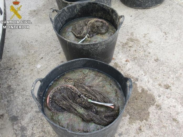 En las inmediaciones de la zona fueron localizadas dos redes en las que el detenido había ocultado al menos 60 kilogramos de ortiguillas, una especie que, tras mucho tiempo de captura indiscriminada y sin control alguno, ha terminado por ser muy rara en el litoral gaditano, y para cuya captura se necesita de una autorización de la Junta de Andalucía.