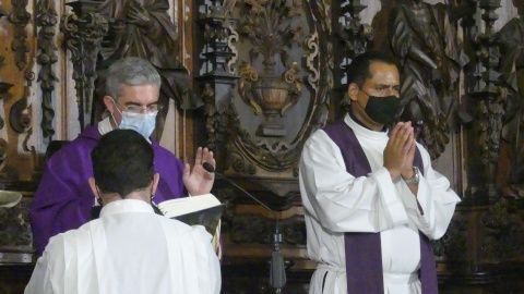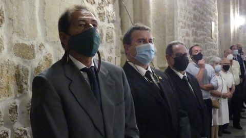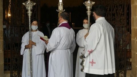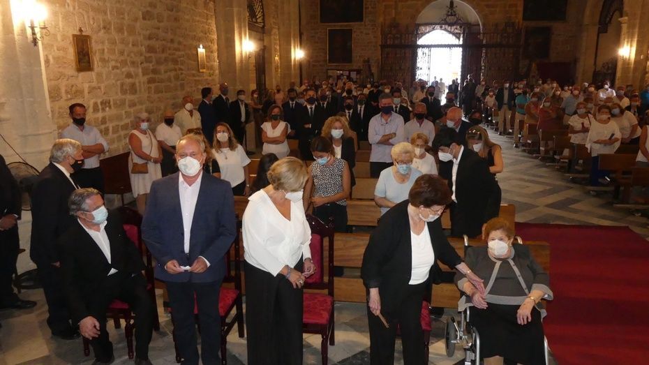 Representantes de hermandades locales, políticos, el almirante de la Base y otras autoridades militares y civiles, y ciudadanos en general, llenaron la parroquia, manteniendo las distancias y con la mascarilla puesta, para escuchar la misa que oficiaba el que fuera director del colegio Salesianos en los tiempos en los que Felipe Benítez era presidente de la Fundación Alcalde Zoilo Ruiz-Mateos, Santiago Gassín. Además, estuvo presente el Orfeón "Virgen de la Escalera" de Rota, que tanto impulso tuvo gracias a la gestión cultural de esta misma fundación que dirigía el ex alcalde una vez que se retiró de la política.