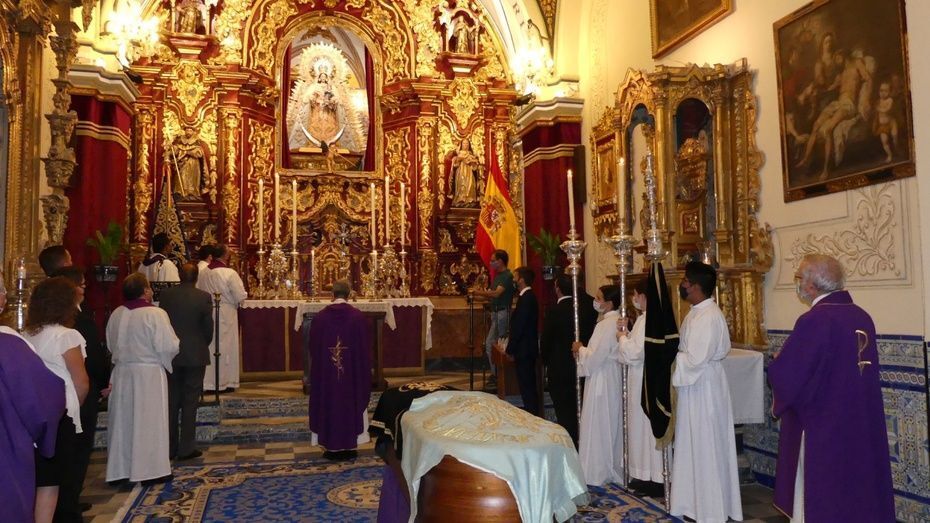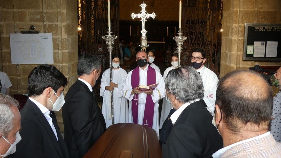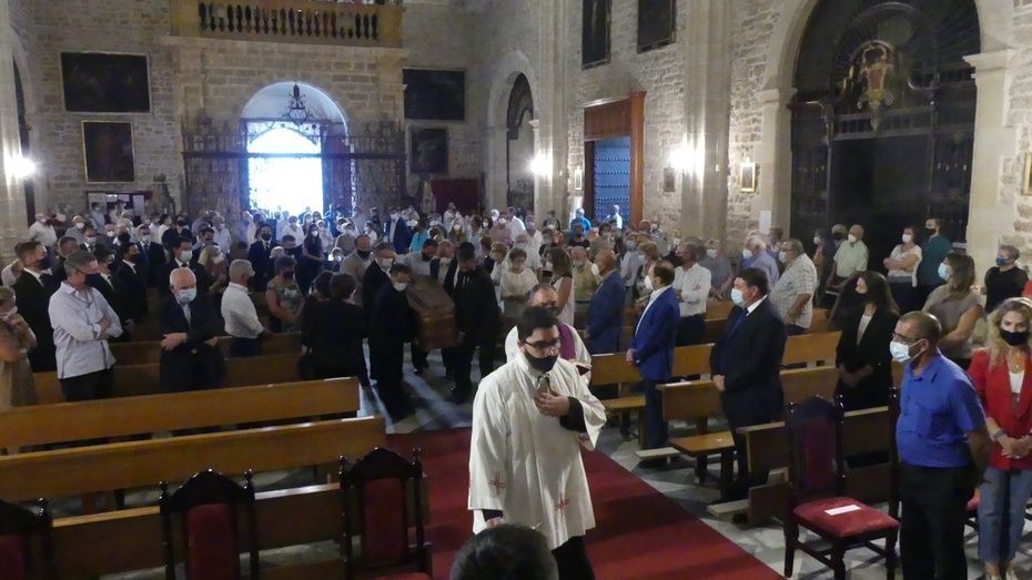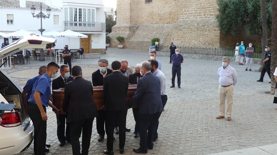 Minutos antes de las ocho de la tarde, se procedía al traslado del ataúd a la parroquia de Nuestra Señora de la O donde se oficiaría la misa por su eterno descanso. Sus hijos Felipe y Manolo, su cuñado, su nieto, el ex alcalde del PSOE y amigo, Domingo Sánchez Rizo, el actual alcalde de Rota, Javier Ruiz, y el chófer personal del fallecido portaron el féretro hasta el coche fúnebre que lo llevó a las puertas de la iglesia que esperaba llena - según el aforo actualmente permitido-.