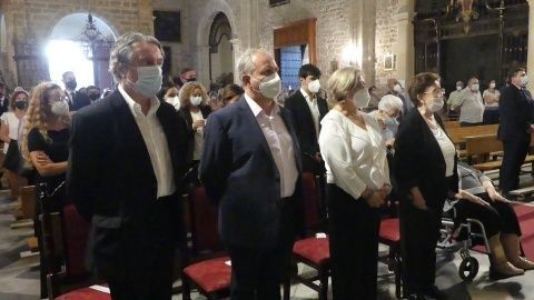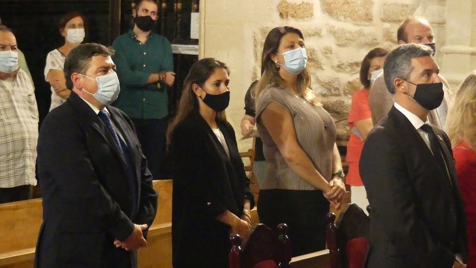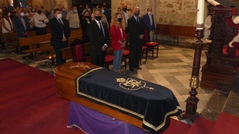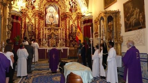 Cubierto con la bandera de las Hijas de María Auxiliadora y un banderín de la virgen del Rosario, los restos del ex alcalde presidían la parroquia mayor donde se le recordó como un hombre creyente y que trabajó por su pueblo, quizás, lo más repetido de esta jornada.