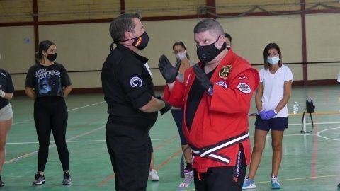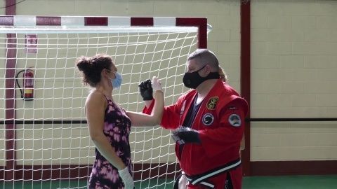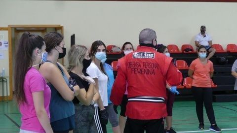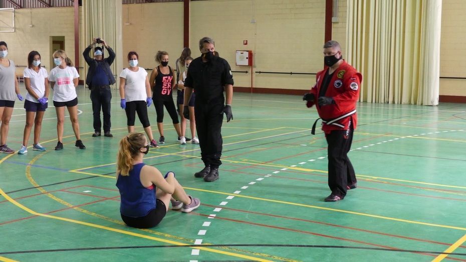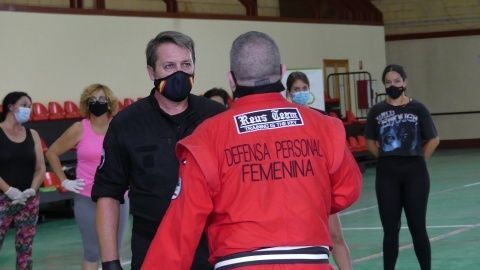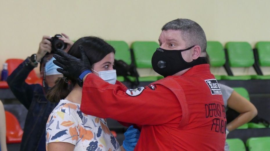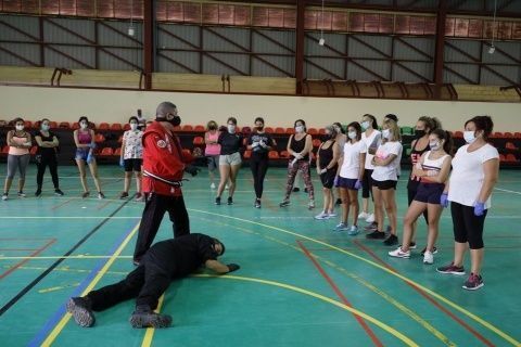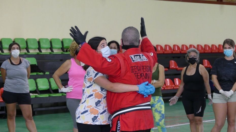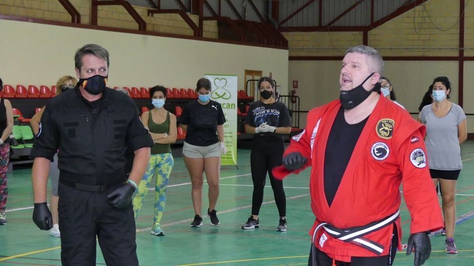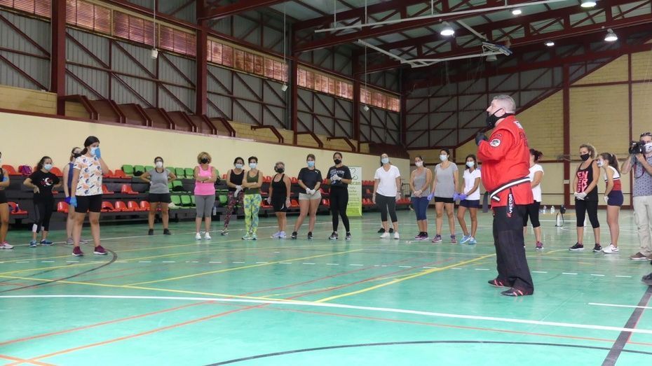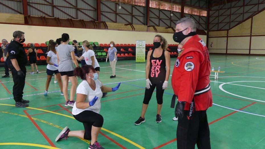 Casi 50 mujeres de todas las edades se han apuntado a esta actividad gratuita en la que, Óscar Prieto, de la asociación O.P. System, asistido por Benjamín Martín, instructor de la Asociación Internacional de Instructores de Defensa Personal Policial (PSDI) de España, han aprendido cómo defenderse ante posibles ataques de un agresor ya sea en el entorno familiar o en la calle.