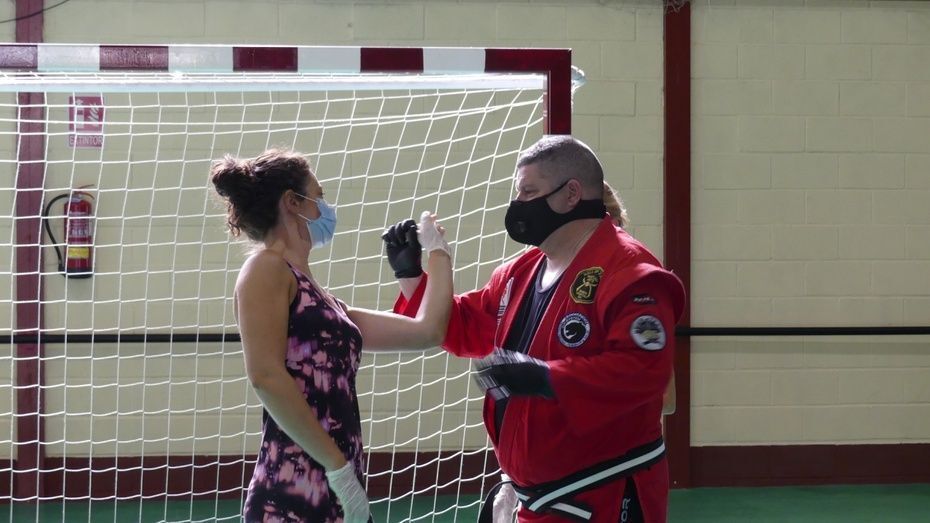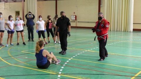 Para ello, desde las 9.30 horas, los instructores, apoyados por el policía local encargado de la formación en la Policía Local de Rota, José Antonio Pérez Fuentes, han recreado posibles escenas de agresión mostrando a continuación de la explicación teórica la forma práctica de salir de ellas. Tras cada simulación, las alumnas han podido poner en práctica entre ellas lo explicado para interiorizar los conocimientos impartidos que han sido básicos pero esenciales en una situación en la que se puedan sentir agredidas.