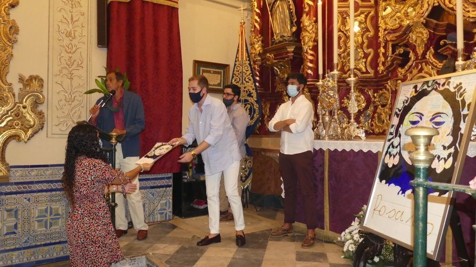 Por su parte, los dos cartelistas dieron las gracias a la hermandad por la confianza depositada en ellos para este cometido y a las personas a las que pidieron participar en este cartel que tiene detrás muchos sentimientos y sobre todo fe, como manifestaba de forma muy poética Santiago Liaño haciendo referencia uno por uno a lo que significa cada azulejo de este cartel que ya está en la calle para anunciar que el 7 de octubre es el día de la patrona de Rota.