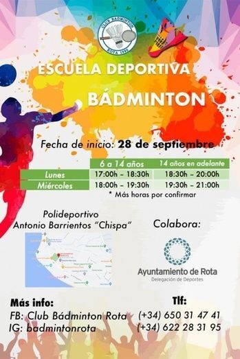 Para más información, se puede contactar en los teléfonos 650 31 47 41 y en el 622 28 31 95 o a través de Facebook (Club Bádminton Rota).