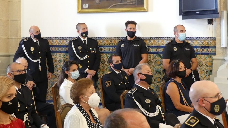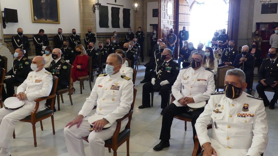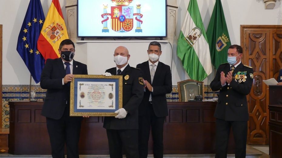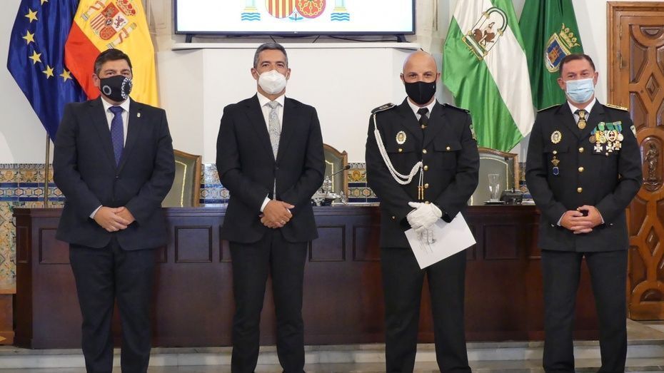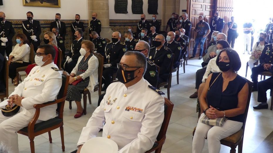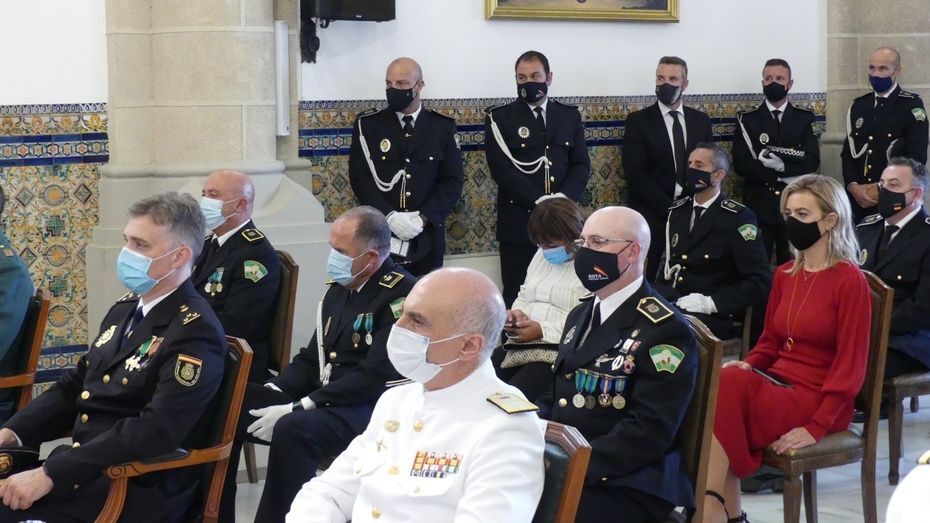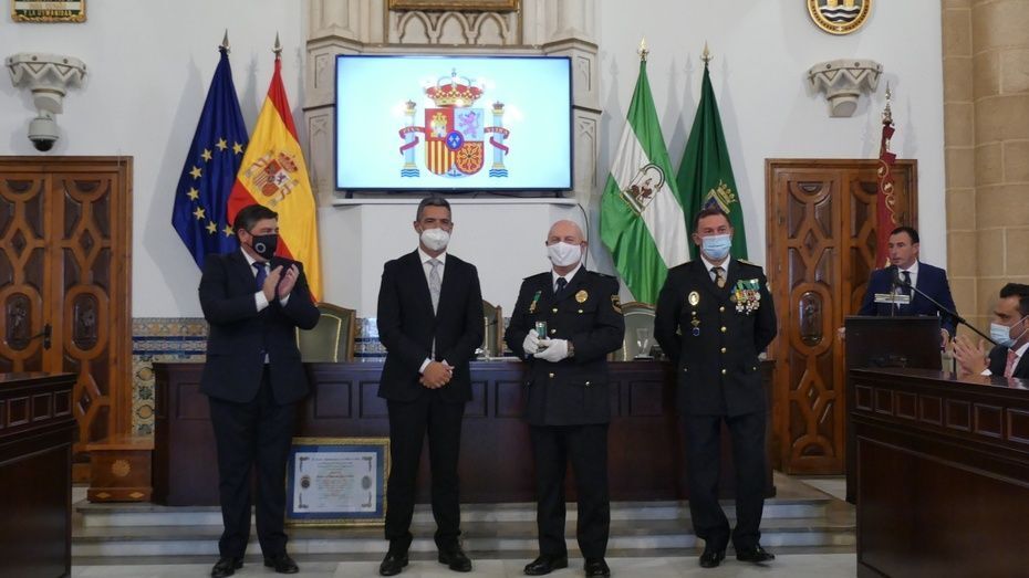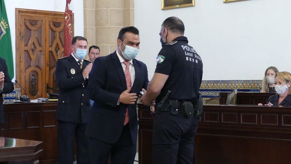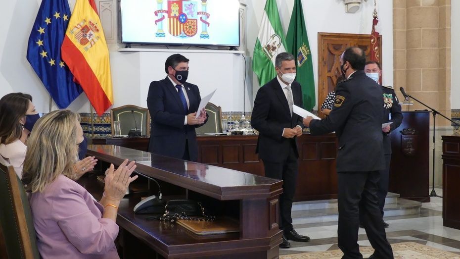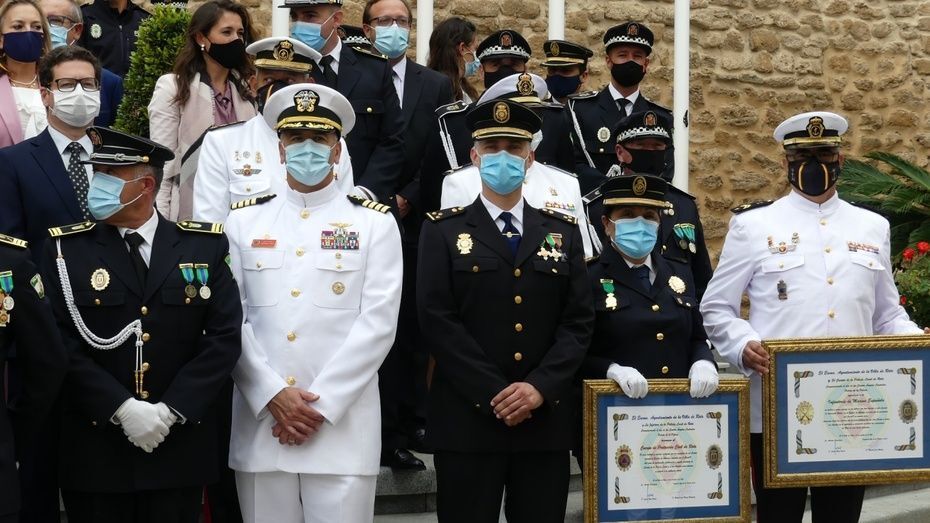 Tener una Policía implicada es un valor añadido y desde el gobierno local, ha dicho, seguirán dotando de recursos materiales al cuerpo con inversiones que pronto se verán en armamento, en formación, en medios de transporte o en nuevas tecnologías con el fin de seguir cubriendo las necesidades de una plantilla de la que se siente orgulloso. El mismo orgullo que manifestaba el alcalde y que se hacía extensivo a los dos condecorados con las Medallas de Oro: Protección Civil por su trabajo diario y especialmente en la crisis sanitaria donde además de atender urgencias, repartieron mascarillas, hicieron la compra a personas mayores y ayudaron a todo aquel que lo necesitó; y la Infantería de Marina que gracias a la Operación Balmis, ha llevado a cabo en Rota un total de 84 actuaciones de desinfección en espacios y edificios públicos para luchar contra el coronavirus.