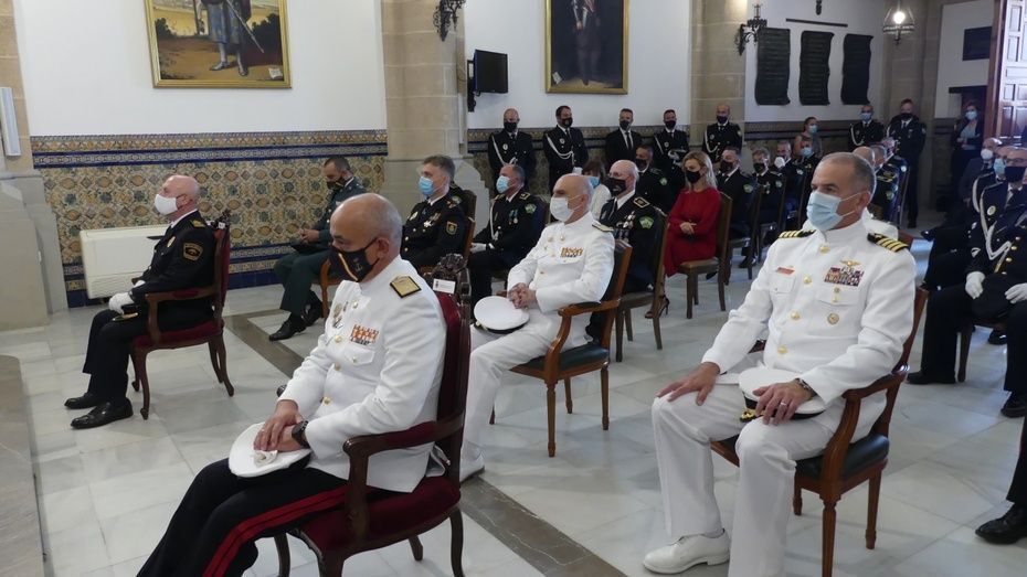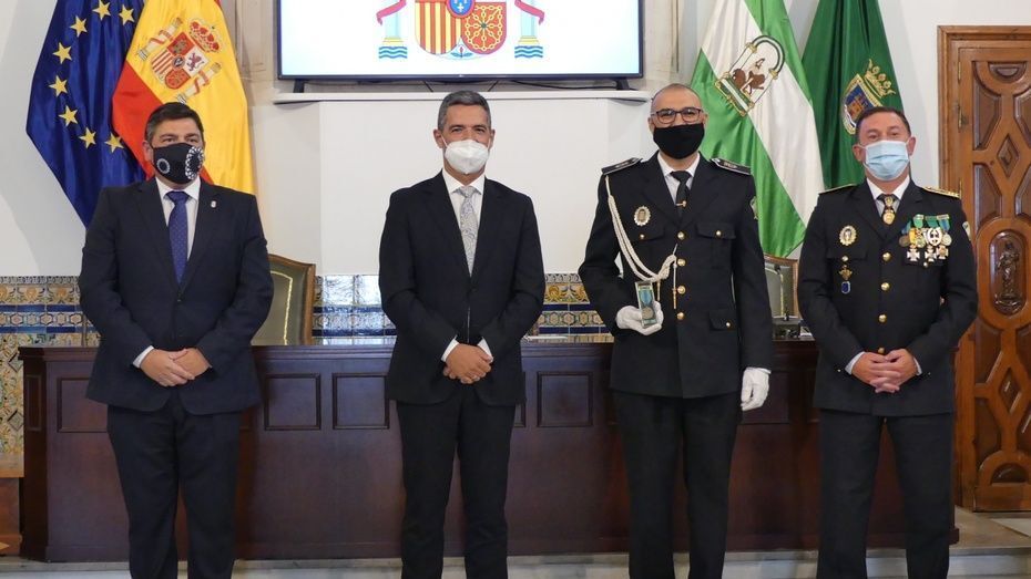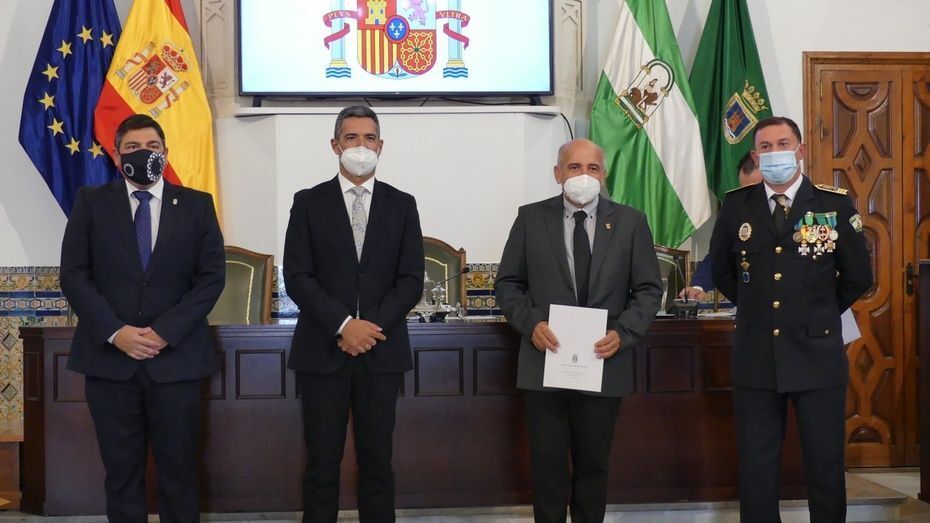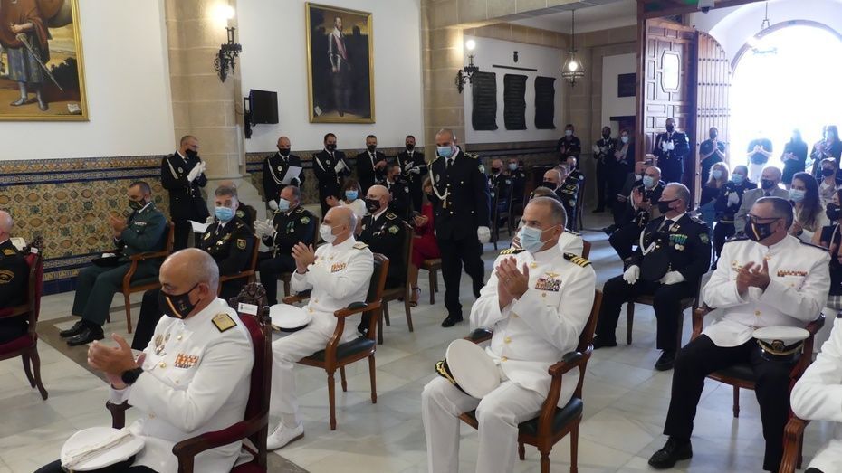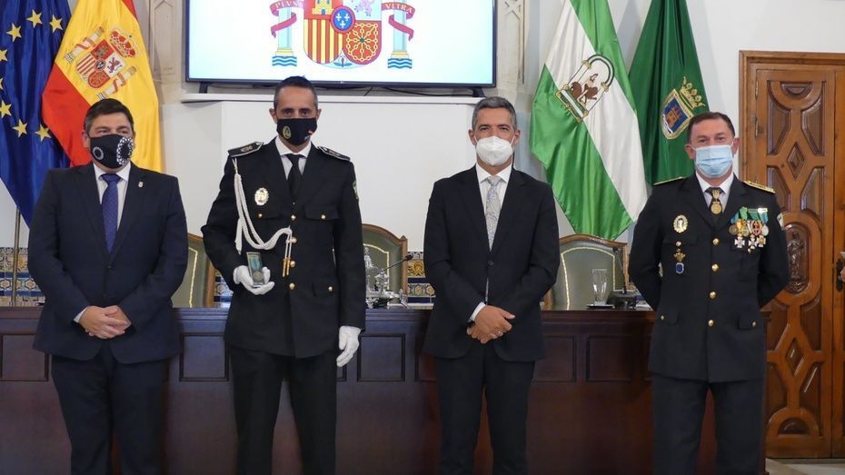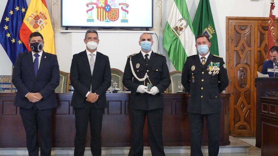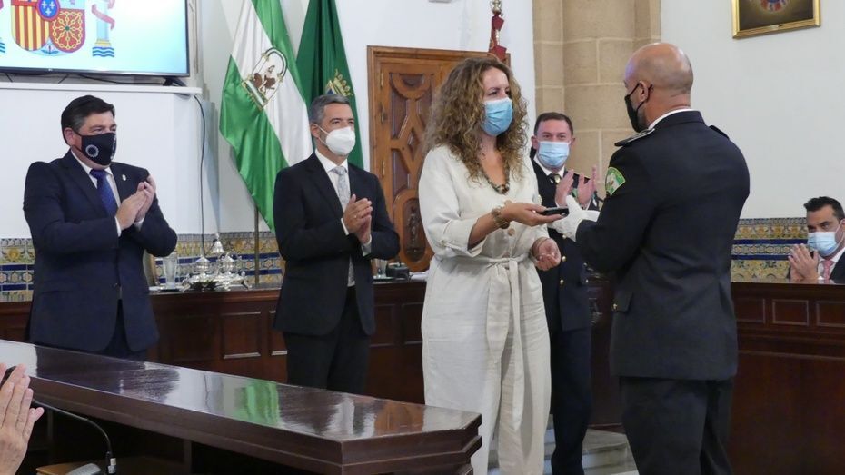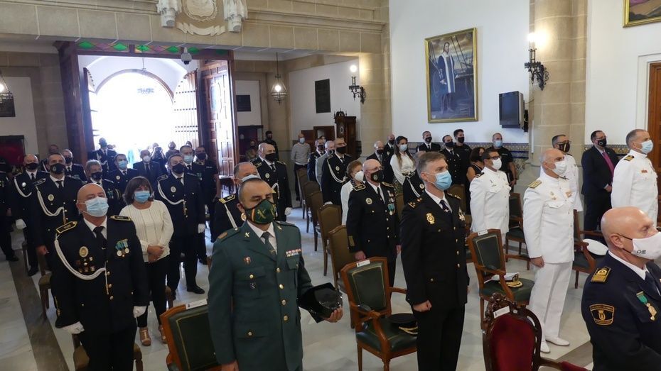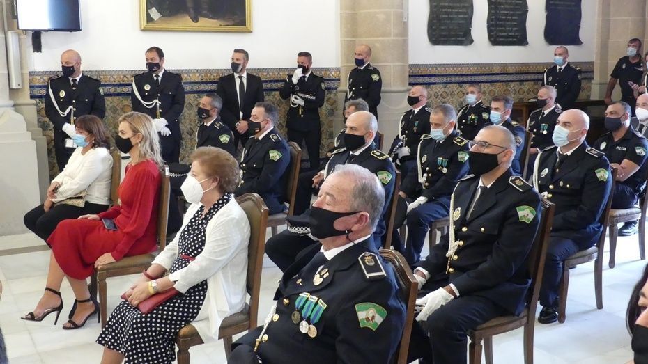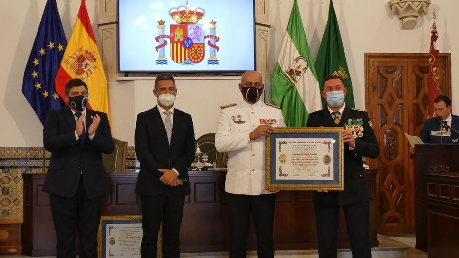 Tener una Policía implicada es un valor añadido y desde el gobierno local, ha dicho, seguirán dotando de recursos materiales al cuerpo con inversiones que pronto se verán en armamento, en formación, en medios de transporte o en nuevas tecnologías con el fin de seguir cubriendo las necesidades de una plantilla de la que se siente orgulloso. El mismo orgullo que manifestaba el alcalde y que se hacía extensivo a los dos condecorados con las Medallas de Oro: Protección Civil por su trabajo diario y especialmente en la crisis sanitaria donde además de atender urgencias, repartieron mascarillas, hicieron la compra a personas mayores y ayudaron a todo aquel que lo necesitó; y la Infantería de Marina que gracias a la Operación Balmis, ha llevado a cabo en Rota un total de 84 actuaciones de desinfección en espacios y edificios públicos para luchar contra el coronavirus.